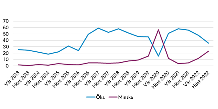 • Ökat: 36 procent (48 procent i vårens mätning)