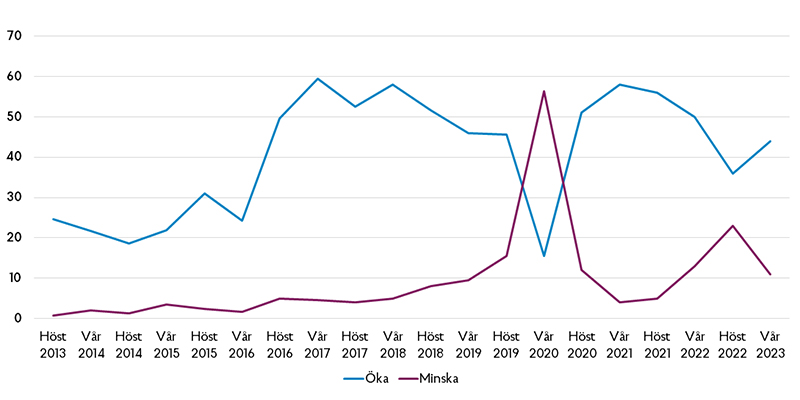 • Ökat: 44 procent (36 procent i höstens mätning)